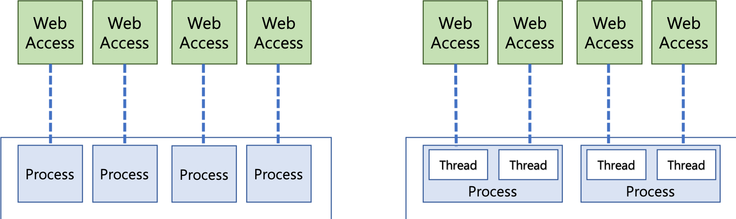 - 클라이언트의 연결이 늘어남에 따라 프로세스가 계속 늘어나 메모리 낭비가 심하고 문맥 교환 비용이 든다.